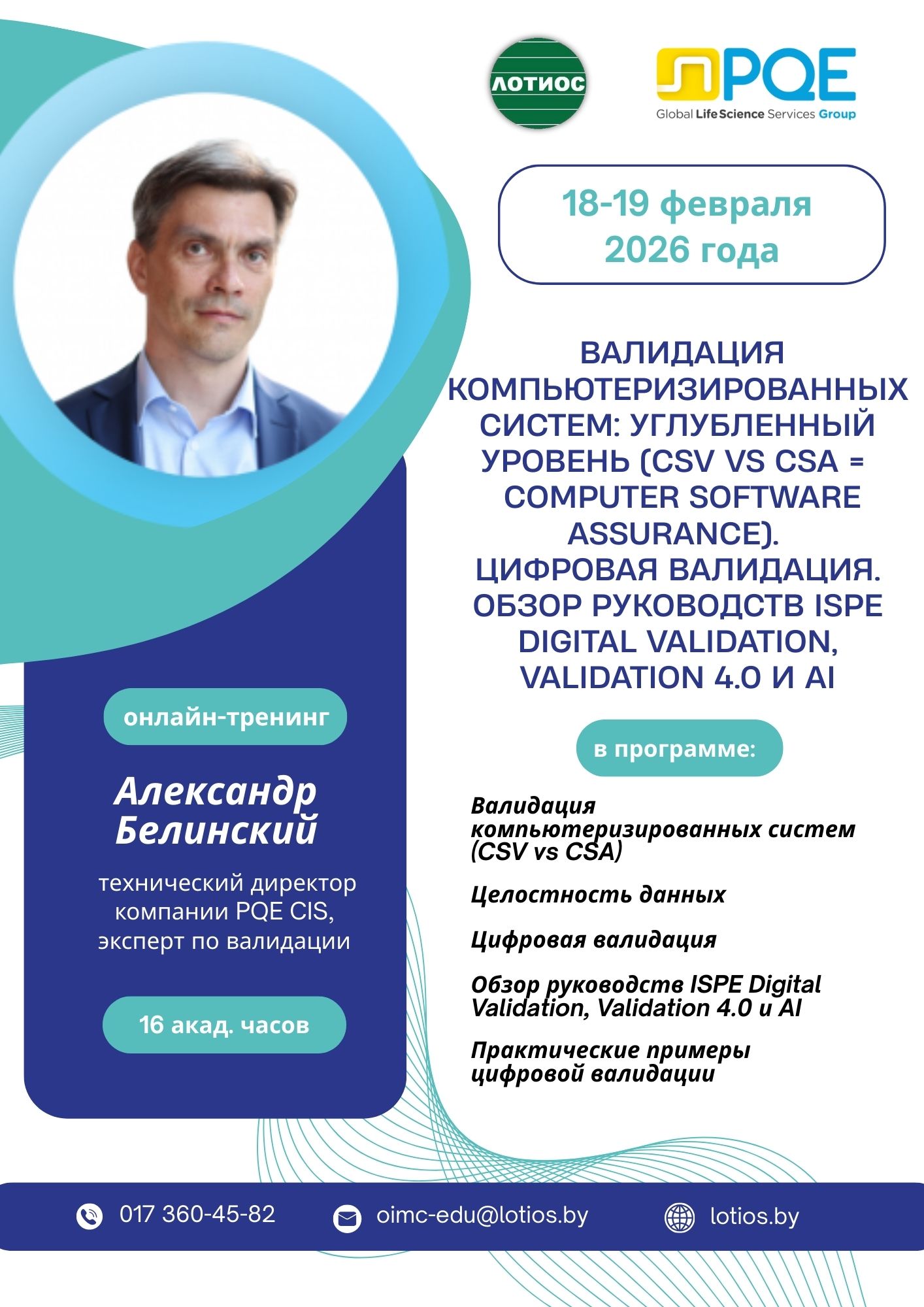 Вебинар-тренинг «Валидация компьютеризированных систем: углубленный уровень (CSV vs CSA = Computer Software Assurance). Цифровая валидация. Обзор руководств ISPE Digital Validation, Validation 4.0 и AI» 18-19 февраля 2026 года