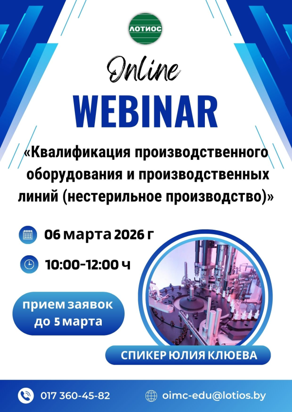 Вебинар «Квалификация производственного оборудования и производственных линий (нестерильное производство)»