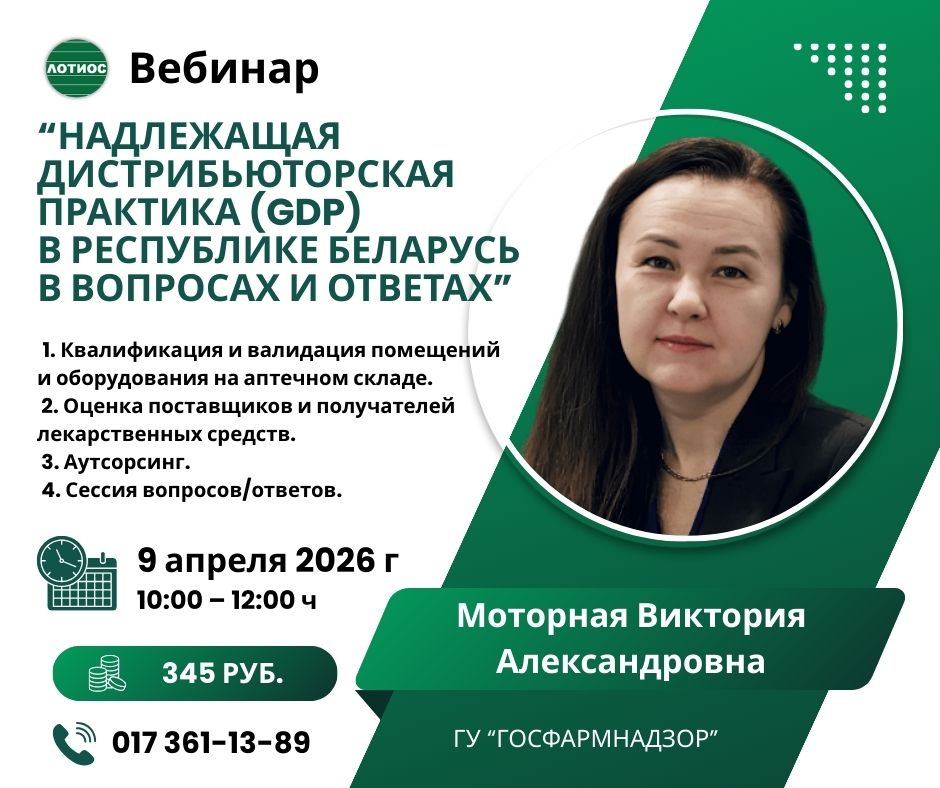 Вебинар «Надлежащая дистрибьюторская практика (GDP) в Республике Беларусь в вопросах и ответах» 9 апреля 2026 года, 10.00-12.00 ч
